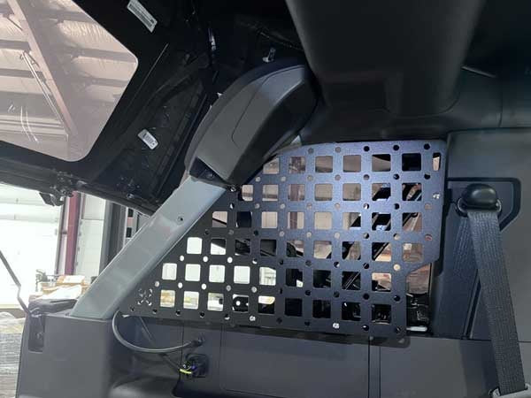 Looking to add storage to your Bronco? Then the Barnes 4wd Bronco rear window molle panel is perfect for you. Our molle panels are designed to mount directly to your bronco without any modification to the vehicle and are a perfect place to securely mount all your off-road and overlanding accessories. The panels are laser cut and CNC Bent in house out of 11 gauge American steel.Β They will ship with a textured powder coat finish will all stainless steel hardware. The panels are sold per side please select the side in the menu.