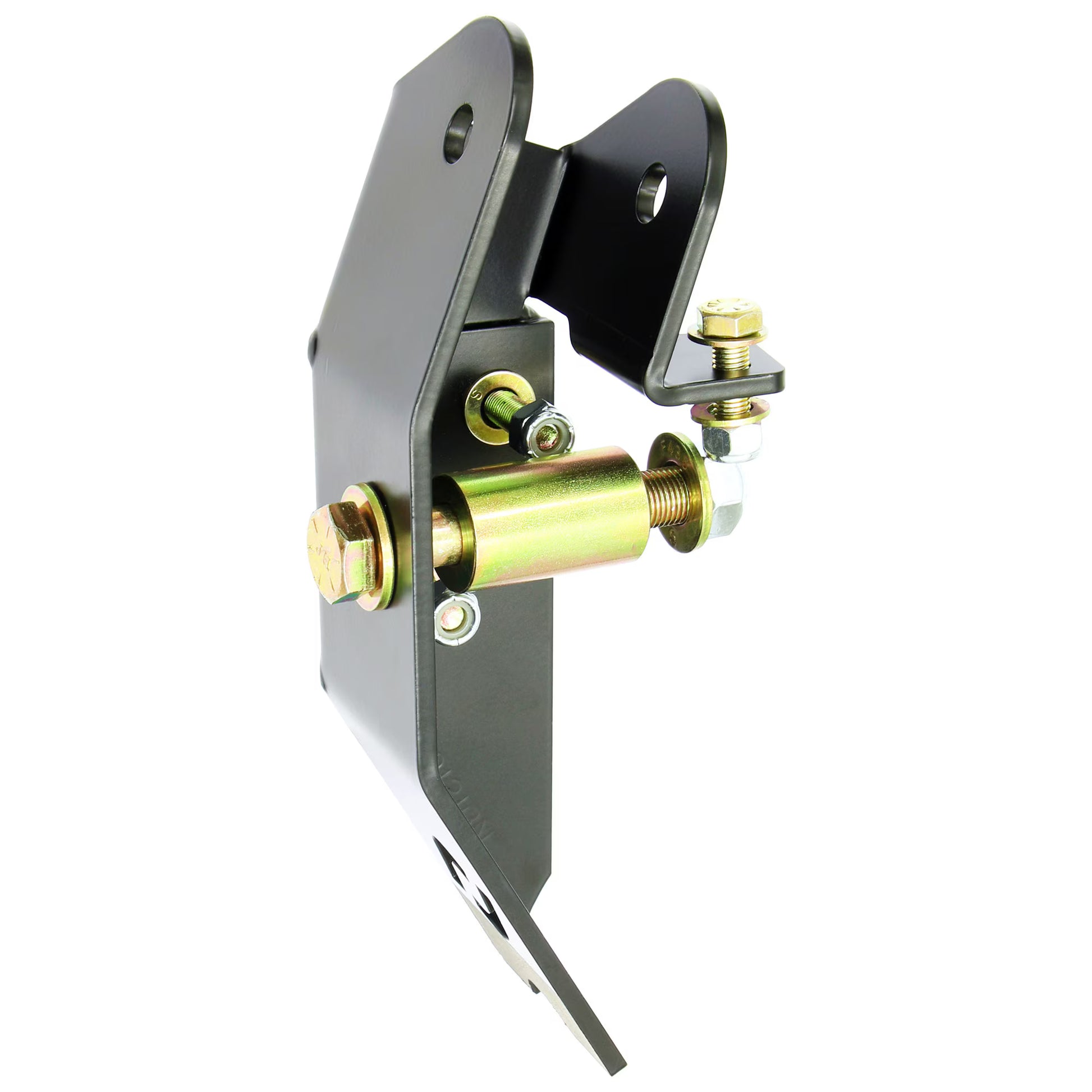 Finish is semi-gloss black powder coat on the bracket and gold zinc plating on the hardware.